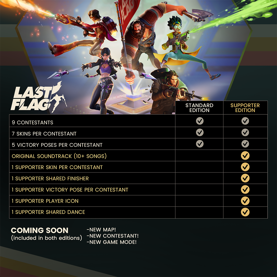 We've also got new maps, new contestants, and even new modes already in the works that will be added to the game for free in future updates. In fact, our third map and tenth contestant are almost ready for primetime, and we expect both will bring unique twists to the Last Flag formula. We can't wait for you to try them out this Summer.
